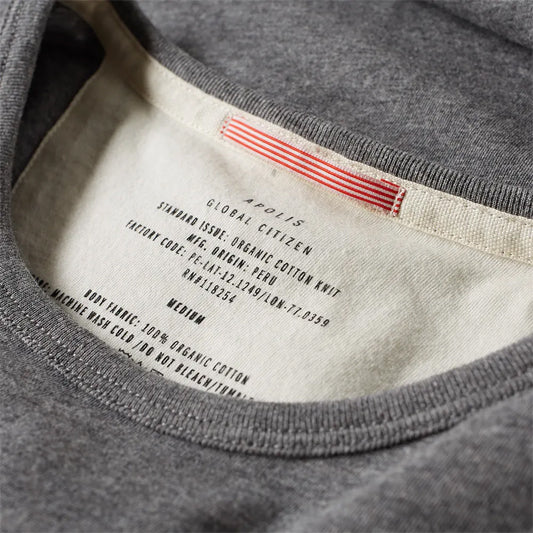 Classically styled for every day wear, Apolis' crew tee has been cut from an organic cotton and crafted in Peru using the highest possible social and environmental standards. Inspired by military issue undershirts, the tee is finished with a slim band neckline and a small '+' stitch detailing to the back neck.