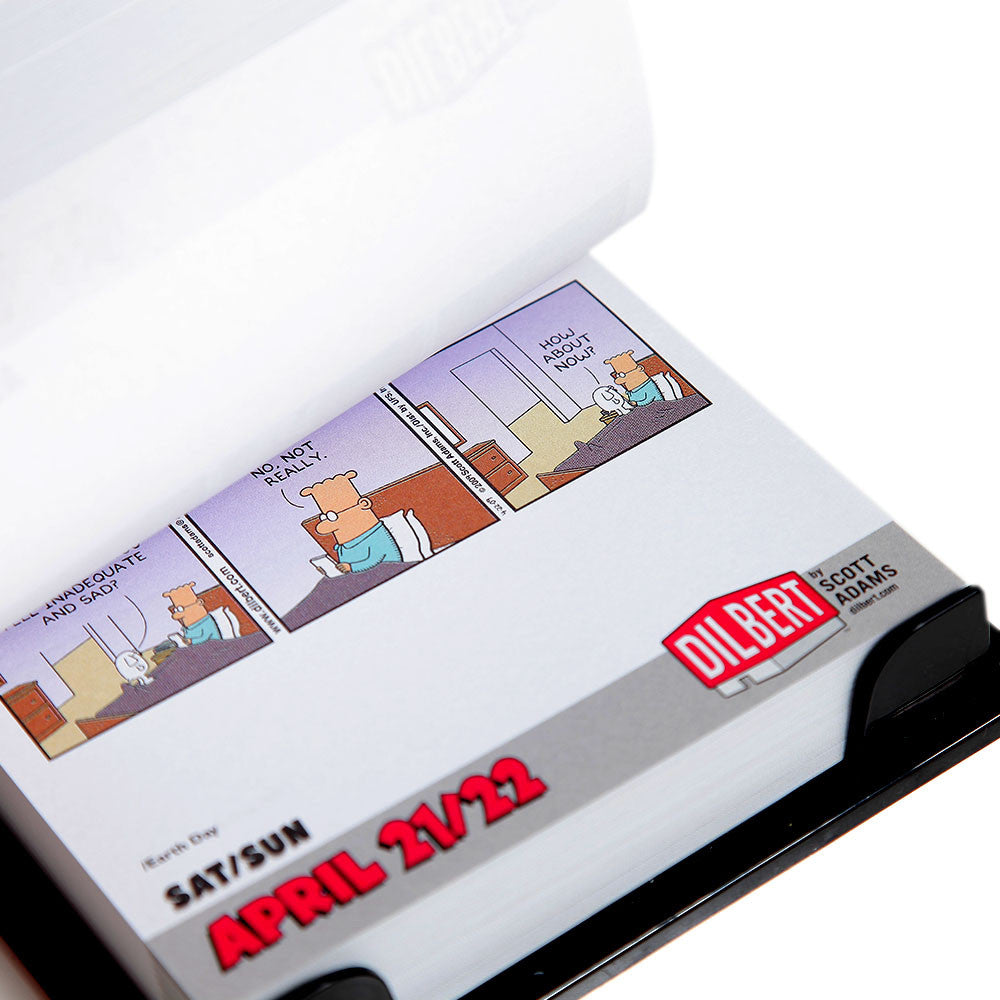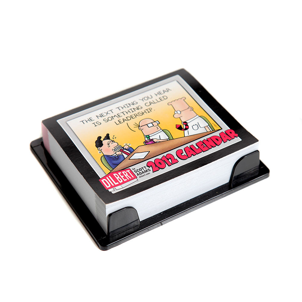 If you work in an office, chances are you know (or are) a Dilbert, Wally, Alice, or-heaven forbid-a Pointy-Haired Boss. Scott Adams's immediately recognizable characters from his phenomenally popular comic strip Dilbert scream "It's you!" at cubicle dwellers everywhere, whether through the Boss's lame attempts at buzz-speak or Dilbert's detached amusement at the absurdity surrounding him. The Dilbert 2012 Table Calendar offers a year of relatable hilarity, no matter which character you work next to. As equally at home in a fabric-covered box as in a corner office, the Dilbert 2012 Table Calendar features a large redrawn and colorized panel from a Dilbert cartoon and two supporting strips on each spread.
